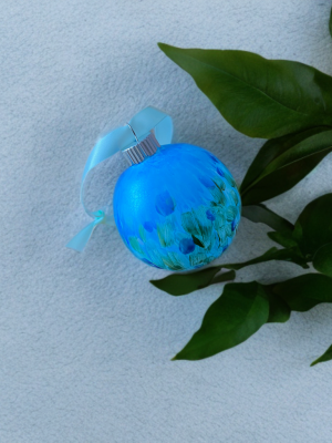 Hand painted with blends of acrylic green, purple and blue brushstrokes depicting a garden and sky