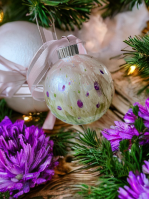 Hand painted with blends of purple, pink and green acrylic floral designs
