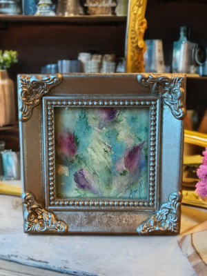 "Rose Garden" is an abstract piece showcasing the beauty of a summer rose garden.