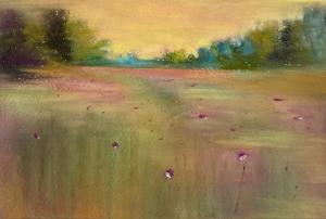 Soft pastels showcasing the colors of dusk as they reflect on flowers in the meadow.